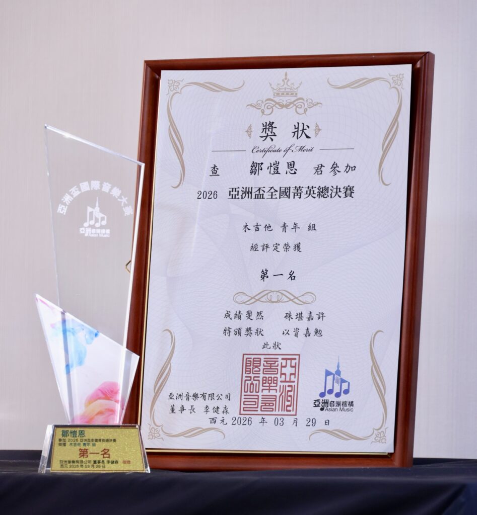 🏆 榮耀時刻:亞洲盃全國菁英賽木吉他青年組第一名